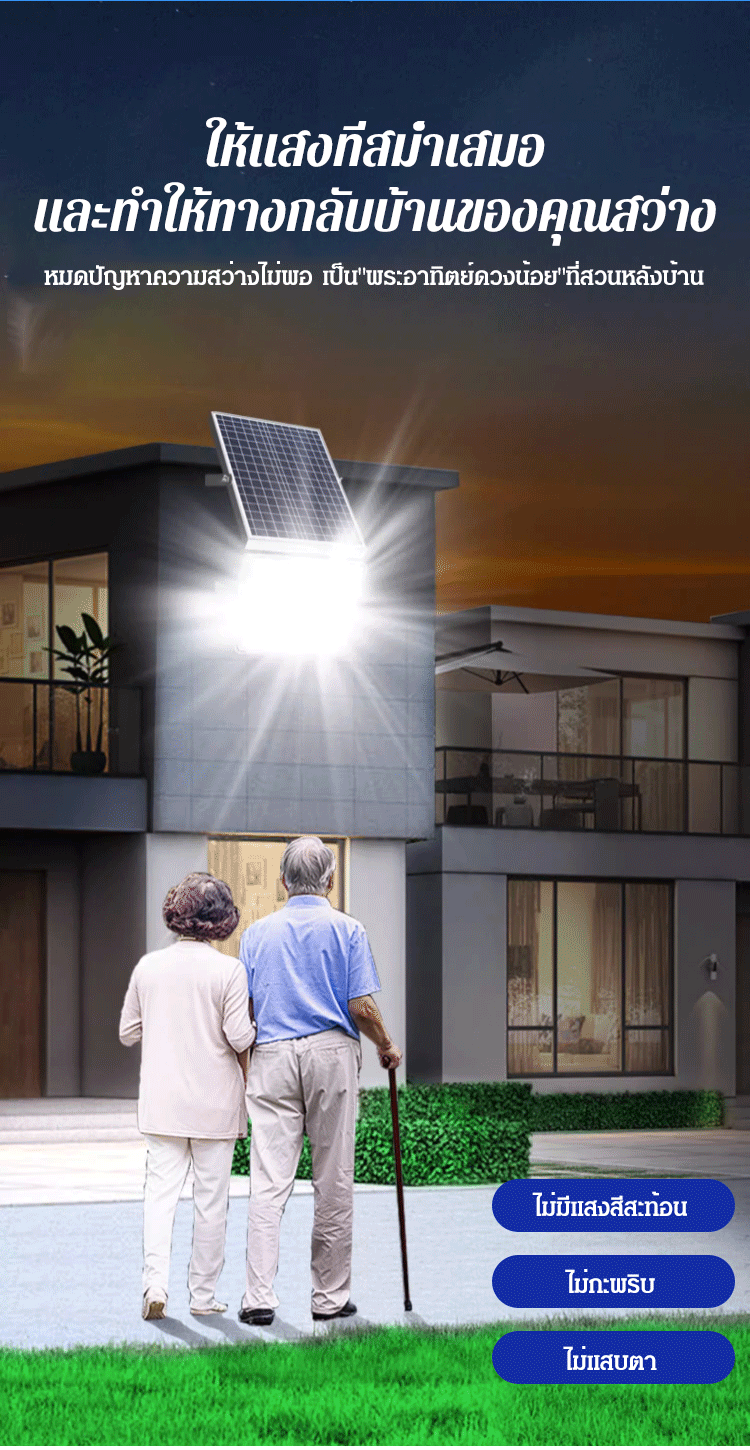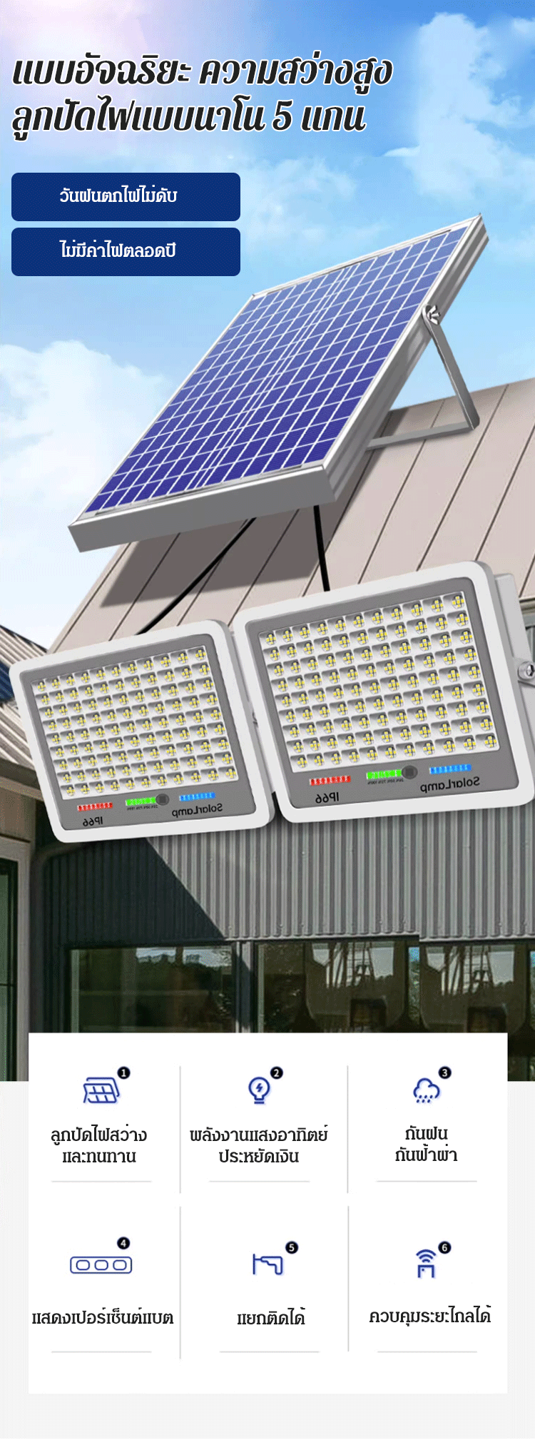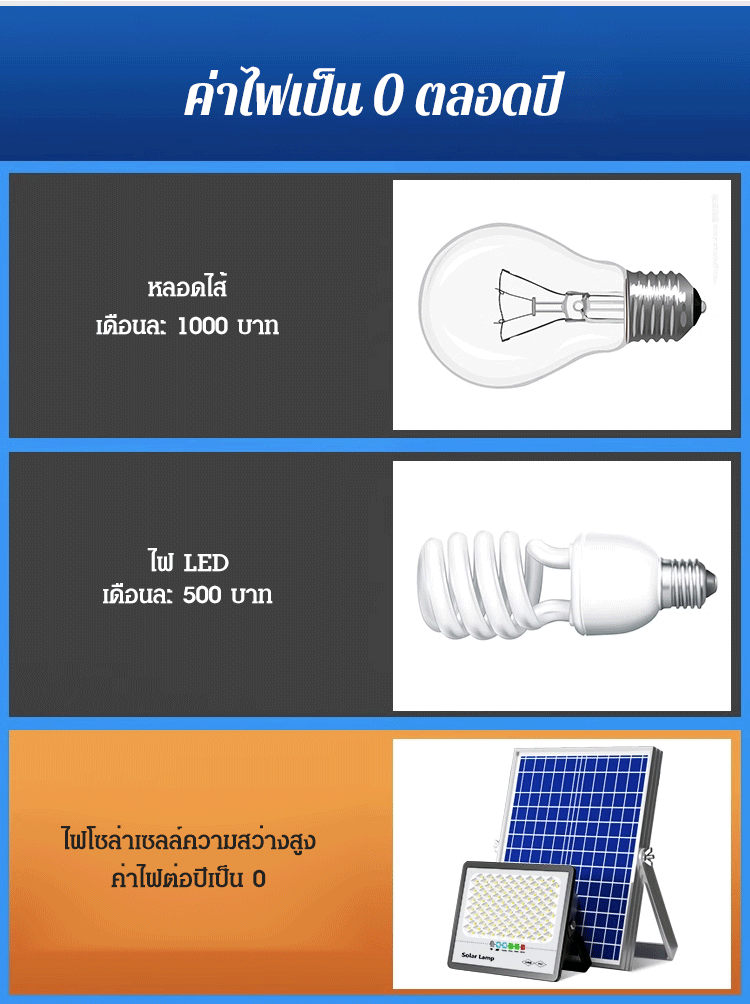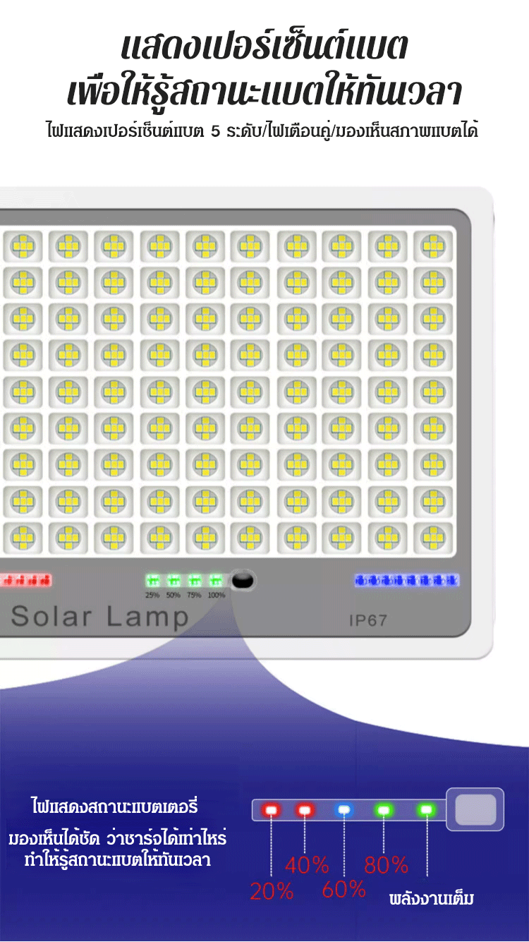 (ทนทาน 10 ปี) ไฟโซล่าเซลล์รุ่นใหม่ สีน้ำเงิน