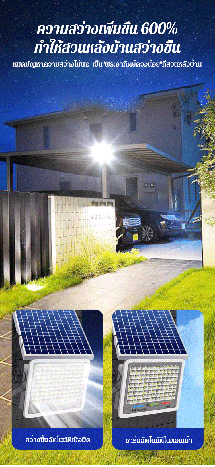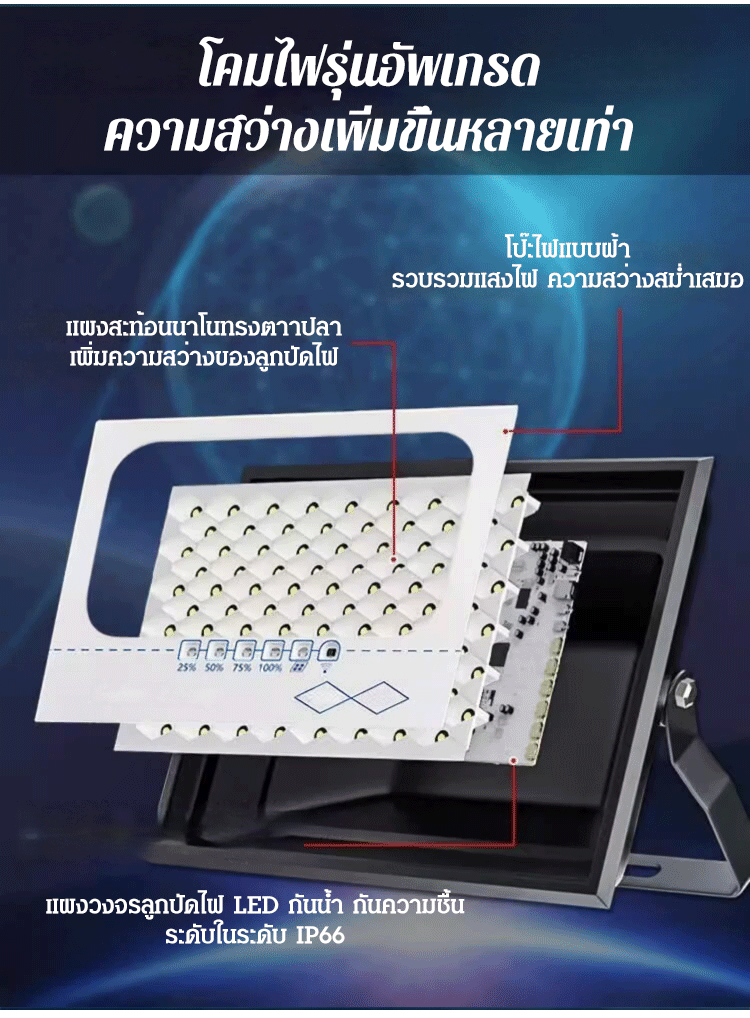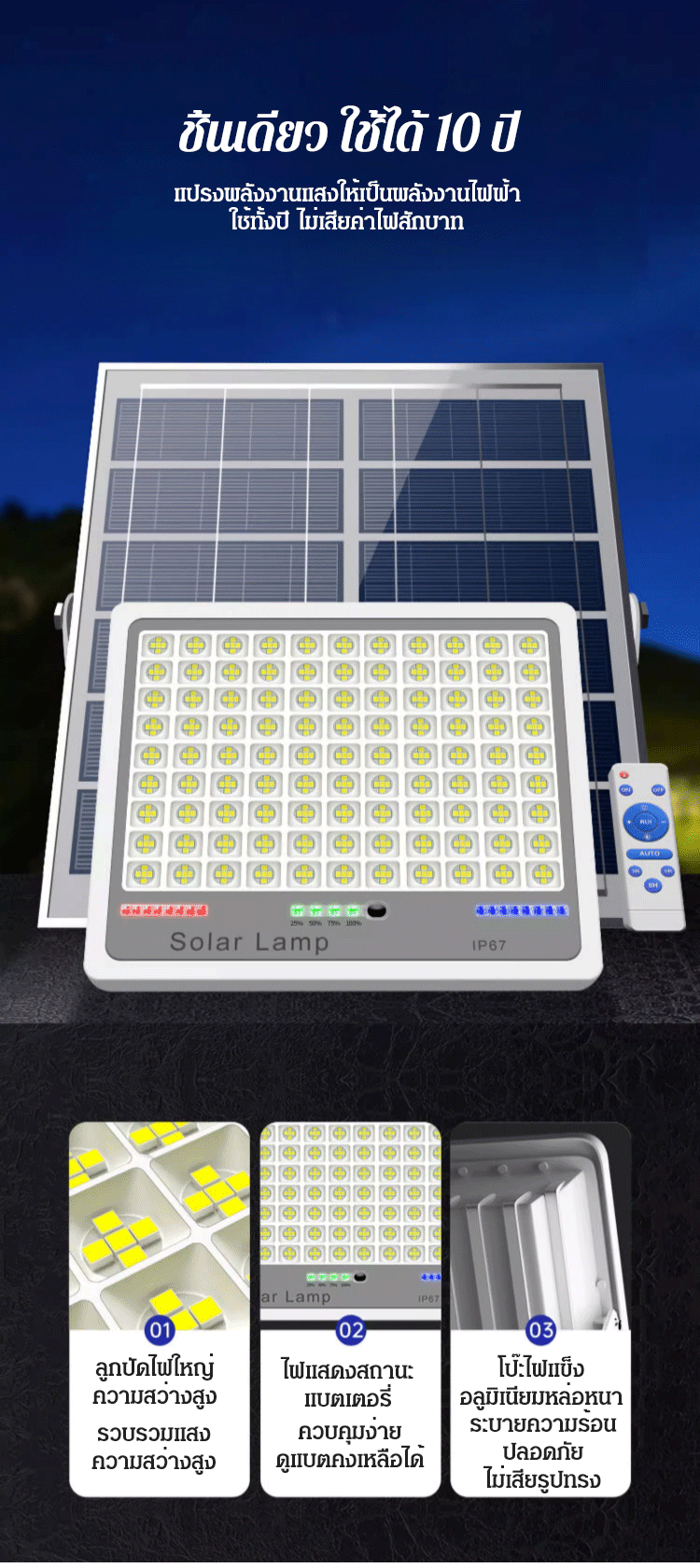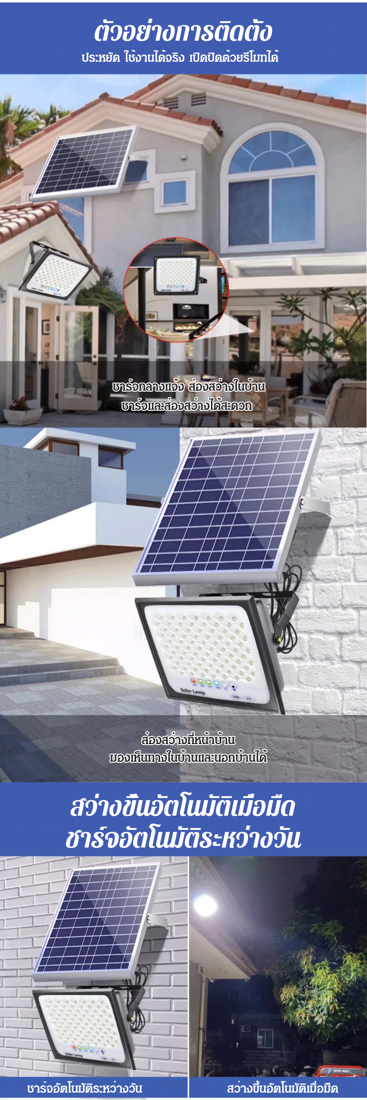 (ทนทาน 10 ปี) ไฟโซล่าเซลล์รุ่นใหม่ สีน้ำเงิน